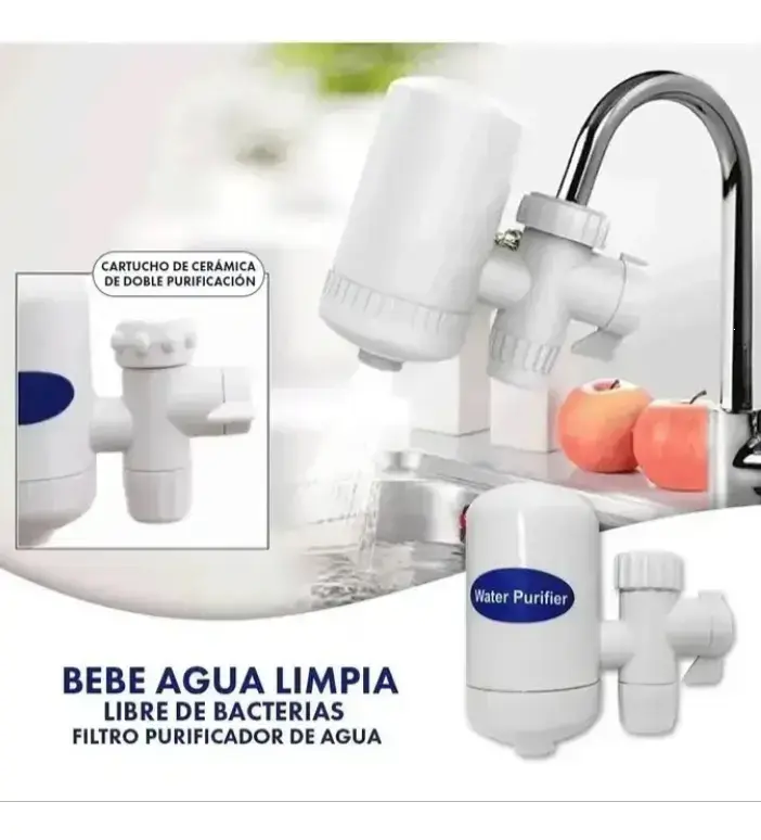 Sistema de purificación de agua de instalación directa en grifo, diseñado para eliminar impurezas, sedimentos y cloro mediante un núcleo de filtrado avanzado. Proporciona agua más limpia y segura al instante para beber, cocinar o lavar alimentos, mejorando notablemente su sabor y claridad.